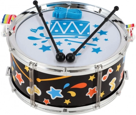Start je eigen muzikale show! Dit kleurrijke kunststof trommeltje met praktische draagriem en stokjes is ideaal voor kleine muziekliefhebbers. Kinderen kunnen altijd en overal trommelen – het spel bevordert op natuurlijke wijze ritmegevoel, fijne motoriek en creativiteit.
