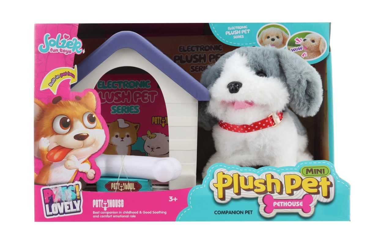 De verpakking bevat niet alleen het hondje, maar ook zijn hok en speeltje - een botje. Gemaakt van plastic en pluche, wat zorgt voor een aangename aanraking en hoge duurzaamheid. Een geweldig cadeau voor elke gelegenheid!