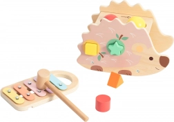 De vrolijke houten egel verbergt twee functies waar kinderen dol op zijn. Met dit speelgoed oefenen ze hun precisie bij het inslaan van gekleurde vormen en ontdekken ze tegelijk de tonen van de xylofoon. Een combinatie van spel en muziek: