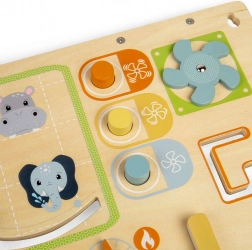 Dit kleurrijke activiteitenbord met schattige dieren biedt tal van leuke activiteiten om de fijne motoriek, nieuwsgierigheid en vaardigheden van je kind te ontwikkelen.