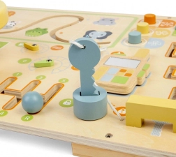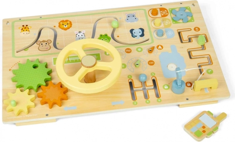 Dit activiteitenbord zit vol met diverse activiteiten, zoals knopjes, een doolhof, tandwielen, draai- en schuifelementen. Stimuleert de fijne motoriek en hand-oogcoördinatie, bevordert probleemoplossend vermogen en begrip van oorzaak en gevolg. Kinderen leren spelenderwijs!