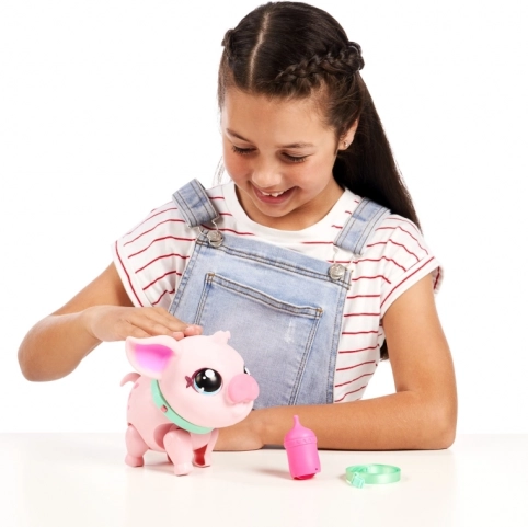 Ontdek een magisch huisdiertje dat tot leven komt in kinderhanden. Piggly is een zacht, roze biggetje met schattige oogjes en een halsband dat reageert op aanraking, beweging en verzorging. Dankzij de lijn neem je het makkelijk mee voor een wandeling, en als het honger krijgt, voed je het met het flesje.