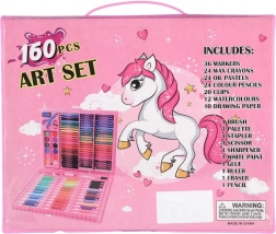 Deze rijk uitgeruste tekenset maakt elke kleine kunstenaar blij. Het eenhoorndesign springt meteen in het oog en het praktische plastic koffertje houdt alle materialen overzichtelijk bij elkaar. Dankzij het brede palet aan kleuren en soorten schrijfwaren is de set perfect voor tekenen, schilderen, inkleuren en de eerste kunstprojecten.