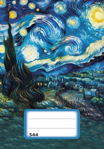 Modern en duurzaam schrift met gelijnde pagina's en het motief "Sterrennacht" is ideaal voor scholieren en studenten. De kwalitatieve kaft van krijtpapier garandeert een lange levensduur.