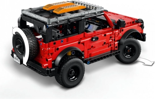 Ontdek de bouwset LEGO Technic SUV FORD BRONCO voor kinderen vanaf 9 jaar met realistische functies – openslaande deuren, werkende besturing via het reservewiel achterop, onafhankelijke vering, V6‑motor en een dakdrager met offroad-sandboards. Een geweldig cadeau voor autoliefhebbers en offroad-avonturiers.