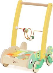 De houten loopwagen van het merk Classic World is uitgerust met wieltjes die de poten van de kameleon laten bewegen, waardoor het duwen nog leuker wordt. Ook inbegrepen zijn blokken in verschillende vormen en kleuren, die vrij stapelen mogelijk maken en de creativiteit en praktische vaardigheden bevorderen. Een kralenlabyrint op de hendel voegt nog een mogelijkheid toe voor interactieve spelletjes, die oog-hand-coördinatie en behendigheid ondersteunen.