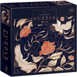 Duik in een wereld van rust en schoonheid met de puzzel Geheime Tuin. Deze prachtige afbeelding toont de verfijnde lijnen van kraanvogels en bloemen, die samen een harmonisch tafereel vormen.