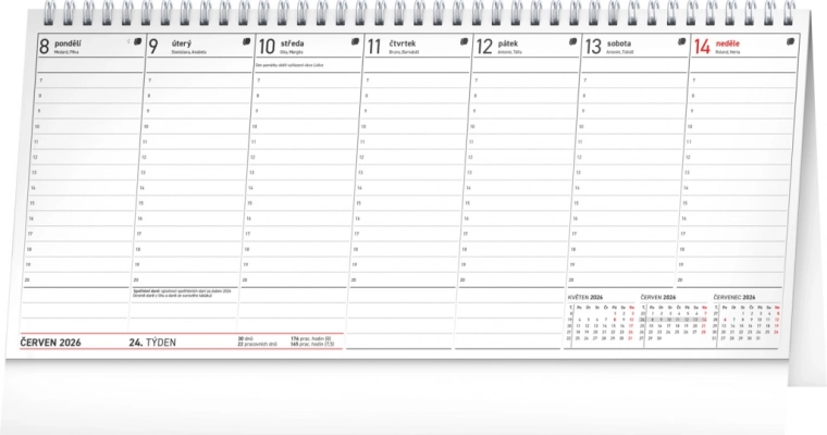 De Notique bureaukalender voor 2026 is ideaal voor planning met de nadruk op belastingsdeadlines. Het overzichtelijke kolomkalendarium bevat Tsjechische namen, feestdagen en gedenkdagen.