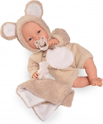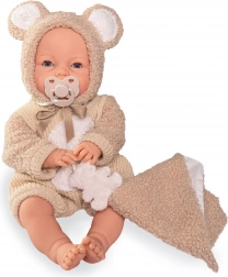 Deze unieke Spaanse pop reageert op de magnetische speen, bij het verwijderen ervan begint ze te praten en te huilen als een echt kind, wat kan worden gekalmeerd door de speen weer terug te plaatsen. De pop heeft een zacht stoffen lichaam, terwijl het hoofd en de ledematen zijn gemaakt van hoogwaardige zachte vinyl voor een aangename aanraking.