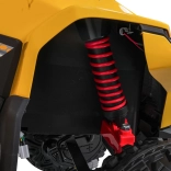 Geniet van avontuur buiten en in de tuin met de robuuste kinderquad Fast Wheel. Dankzij vier 35 W motoren en een hoge bodemvrijheid van 21 cm is oneffen terrein geen probleem. EVA-schuimbanden dempen trillingen en bieden uitstekende tractie, terwijl verstelbare achterdempers het rijcomfort verhogen.