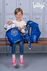 De eenlagige etui met YKK-rits, klein vakje en venster voor het lesrooster (zonder inhoud) wordt aangevuld door een praktische gymzak met voorvak met rits, karabijnhaak om aan de rugzak te bevestigen en stevige trekkoorden om op de rug te dragen.