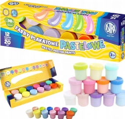 De pastelkleurige plakkaatverf ASTRA 12×20 ml verrukt zowel kinderen als beginnende makers met zachte, licht afgestemde tinten. Ze zijn met water verdunbaar, hebben een hoge dekkracht, laten na droging een mat oppervlak achter en zijn lichtbestendig – ideaal voor creaties op school en thuis.
