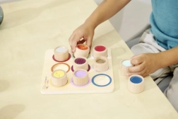 Dit Montessori voelbord is ontworpen om kinderen te motiveren actief te verkennen en verschillende oppervlakken en texturen te vergelijken. Negen afzonderlijke cilinders bieden een rijke zintuiglijke ervaring die het tastbare waarnemen, de concentratie en de oog-handcoördinatie stimuleert.