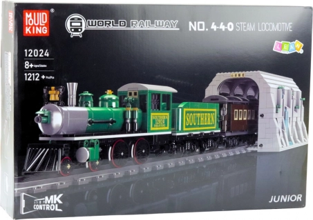 Het model blinkt uit door een authentieke look: groen‑zwarte uitvoering, bewegende wielen en realistische details. De locomotief is uitgerust met een elektrische aandrijving en een 3,7 V Li-accu (inbegrepen), de controller vereist 2× AAA (niet inbegrepen). Dankzij de 1212 stukken ontwikkelt de set fijne motoriek, logica en ruimtelijk inzicht en zorgt hij voor urenlang speelplezier.