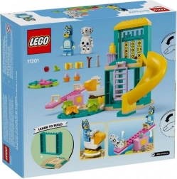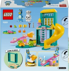 Ontdek de kleurrijke bouwset geïnspireerd op de serie Bluey, waar Bluey en Vlekje plezier beleven op de speeltuin met een glijbaan, schommel, klimrek en een ronddraaiende pelikaan. Eenvoudig te bouwen met een groot startonderdeel en duidelijke instructies die creativiteit, zelfvertrouwen en probleemoplossend vermogen bij kinderen vanaf 4 jaar stimuleren.