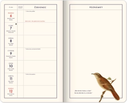 Stijlvolle planner voor 2026 van actrice en presentatrice Kateřina Winterová met boeiende retro-teksten en afbeeldingen uit tijdschriften van weleer, illustraties van kruiden uit herbariums en een Tsjechische kalender met namen, aangevuld met minder traditionele feestdagen en gemarkeerde perioden voor het verzamelen van geneeskrachtige kruiden. Het praktische formaat van 13 × 21 cm is ideaal voor op reis en in je handtas.