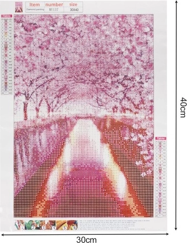 Ontdek de ontspannende wereld van diamantschilderen en maak je eigen kunstwerk met het romantische motief van een kersenbloesemlaan. De set bevat alles wat je nodig hebt en is ideaal voor zowel beginners als gevorderden. Dankzij het gecodeerde canvas werk je eenvoudig en precies, en het voltooide schilderij schittert met een subtiele, sprankelende glans. Een geweldige manier om te ontspannen, creativiteit te ontwikkelen en een originele interieurdecoratie te verkrijgen.
