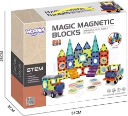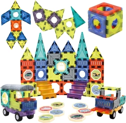 Deze creatieve set magnetische bouwstenen is ideaal voor kinderen vanaf 3 jaar. Dankzij de sterke magneten ontstaan stabiele constructies, van eenvoudige platte modellen tot uitgewerkte 3D-bouwwerken. De transparante gekleurde onderdelen nodigen uit om vormen en kleuren te verkennen en ondersteunen spelenderwijs leren.