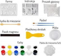 Met deze leuke DIY-set gieten en versieren kinderen gemakkelijk hun favoriete dinosaurussen zoals stegosaurus, triceratops of tyrannosaurus. Het proces is eenvoudig en intuïtief – gips mengen, in de mal gieten, laten uitharden en daarna beginnen met schilderen.