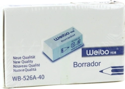 De praktische witte WEIBO gum is onmisbaar voor school en kantoor. Gemaakt van hoogwaardig, zacht materiaal zorgt ze voor schone en effectieve uitgommingen zonder vegen en beschadigt ze het papier niet. Dankzij de compacte afmetingen van 3,5 × 2 × 1 cm past ze in elke etui of lade en bevat geen latex.