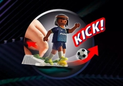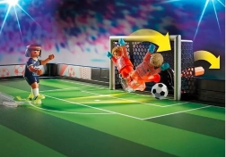 Klap de opvouwbare arena uit, stel je teams op en start de wedstrijd! Deze set uit de PLAYMOBIL Sports & Action-lijn biedt dynamisch spel met coole features. Met het praktische mechanisme kun je spelers naar de bal laten schieten en precies op doel mikken, terwijl keepers op beweegbare stangen razendsnel kunnen reageren en schoten tegenhouden.