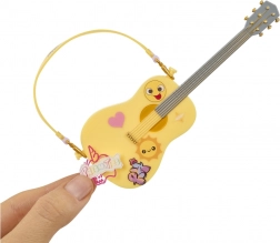 Sunny komt met een lichte gele gitaar versierd met schattige stickers – klaar voor rockoptredens en eindeloze muzikale verhalen.