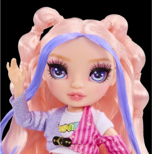 • Authentiek Rainbow High-design in roze tinten met gedetailleerde kleding en accessoires.
