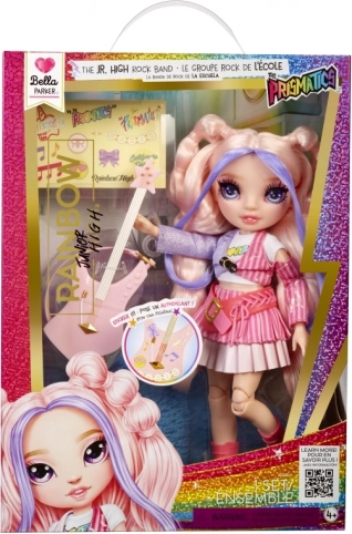 Ontdek de magie van de schooltijd met de Rainbow High Junior Bella, die deel uitmaakt van een rockband. Deze ongeveer 23 cm hoge modepop valt op door haar roze stijl, bewegende gewrichten voor eenvoudig poseren en een coole basgitaar. Inclusief stickers om de look zelf te personaliseren en eindeloos veel creatief spel.