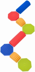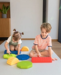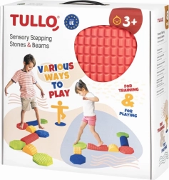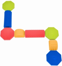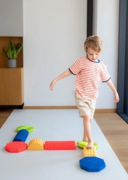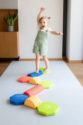 Stel elke gewenste route samen van gekleurde stenen, blokken en balkjes en verander beweging in plezier. Elk onderdeel heeft een andere hoogte en een reliëf oppervlak voor een zekere stap en veilig oefenen. Perfect voor speelse thuisactiviteiten, kleuterscholen, buitenschoolse opvang en sensorische therapie.