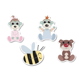Eerste kinderpuzzels voor de allerkleinsten: set bevat 4 puzzels, elk uit 2 grote en stevige stukjes, ideaal voor kinderen vanaf 1 jaar. Kleurrijke illustraties met schattige baby’s en een vrolijke bij stimuleren het zicht en nodigen uit tot spel. Grote en dikke stukken zijn gemakkelijk vast te pakken met kleine handjes – zonder frustratie, alleen speels ontdekkingsplezier.