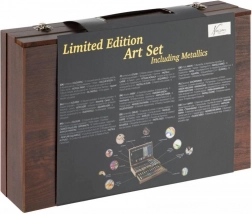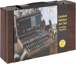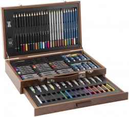 Ontdek een veelzijdige kunstset in een elegante houten koffer, die alles biedt voor zowel tekenen als schilderen. De stevige constructie, het afsluitbare deksel en robuuste sluitingen zorgen voor veilige opslag en gemakkelijk meenemen. In de set vind je een brede selectie kleuren, potloden, krijt en penselen voor eindeloze uren creativiteit. Ideaal voor beginners en gevorderden.