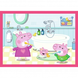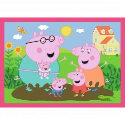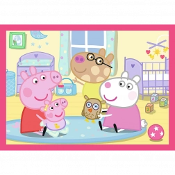 Ontdek de magie van puzzelen met de favoriete helden uit de serie PEPPA PIG. Deze 4-in-1 set biedt vier onafhankelijke afbeeldingen met een verschillend aantal stukjes, waardoor de geleidelijke ontwikkeling van motoriek, geduld en logisch denken wordt gestimuleerd. Elke voltooide afbeelding heeft een formaat van 285 × 205 mm, ideaal voor kleine handjes.