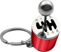 Deze originele sleutelhanger in een elegante rode kleur combineert praktisch gebruik met een aantrekkelijk design. De precieze afwerking van de metalen behuizing en de bovenplaat met aangegeven versnellingen wordt aangevuld door een functionele schakelpook, die je echt door het schakelpatroon kunt bewegen.
