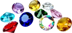Deze veelzijdige set bevat 10 prachtig glinsterende glazen diamanten in verschillende kleuren, opgeborgen in een transparante organizer met vakjes. Dankzij het hoogwaardige materiaal weerkaatsen ze het licht prachtig en geven ze elke decoratie en kinderspel extra flair.