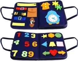 Het sensorische busy-boek met het thema water- en dinosauruswereld is een ideale hulpmiddel voor de ontwikkeling van kindervaardigheden in spelvorm. Kinderen maken kennis met kleuren, vormen en materialen, trainen de oog-handcoördinatie en versterken hun zelfstandigheid bij eenvoudige taken. Het boek is zacht, licht en gemakkelijk mee te nemen – een perfecte reisgenoot.