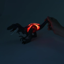 Deze gedetailleerde Velociraptor brengt kinderen een authentieke prehistorische beleving. Bij het indrukken van de staart klinkt een dreigende brul en gaat er een