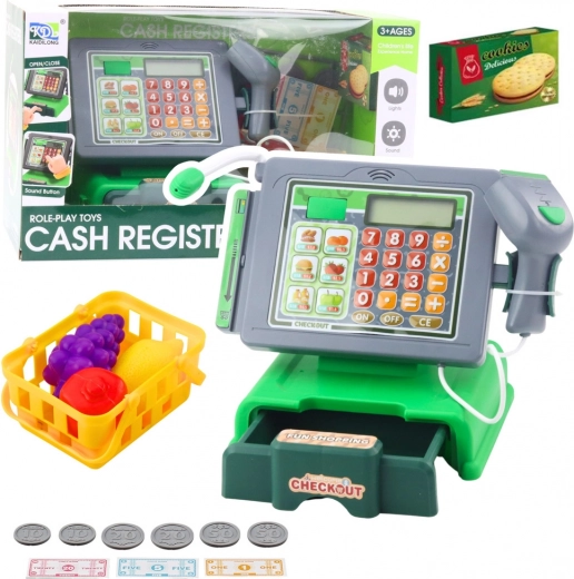 Een leuke en leerzame kinderkassa met accessoires voor realistisch winkeltje spelen. Voorzien van licht- en geluidseffecten, een scanner, microfoon en een cijfer toetsenbord. Inclusief bankbiljetten en munten, een boodschappenmandje en etenswaren voor een nog authentiekere beleving.