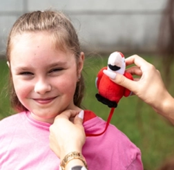 De slimme magneet in de knuffel zorgt voor een stevige maar zachte bevestiging op schouder, mouw of rugzak – zonder spelden of ingewikkeld vastmaken.