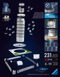 Stap in de wereld van 3D-puzzels en bouw thuis de legendarische Scheve Toren van Pisa. Speciaal gevormde en buigzame kunststof stukjes met EasyClick-technologie klikken precies in elkaar, waardoor bouwen makkelijk, schoon en zonder lijm is. Het resultaat is een stevig, aantrekkelijk model dat ideaal is om tentoon te stellen.