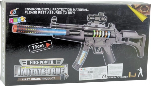 Dit kinderspeelgoedgeweer is gemaakt van hoogwaardig en duurzaam plastic dat intensief spelen aankan en veilig is voor kinderen. De imposante lengte van 73 cm versterkt de realistische look en geeft kinderen het gevoel van echte actie. Bij het overhalen van de trekker worden licht- en geluidseffecten geactiveerd, waardoor het spel nog aantrekkelijker wordt.