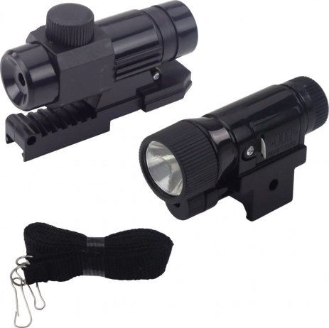- geweer met licht- en geluidseffecten, 2 opzetstukken, schouderriem