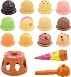 1× standaard voor hoorntje, 1× hoorntje, 1× ijslepel, 12× kleurrijk bolletje