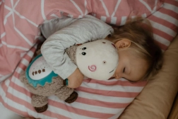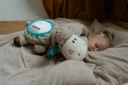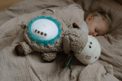 Het schaapje straalt warm, zacht licht uit en speelt melodieën en gedempte natuurgeluiden af voor stressvrij inslapen.