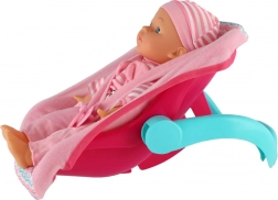 In de set zit een praktisch draagstoeltje/autostoeltje met comfortabele handgreep en veiligheidsriempjes, zodat je de pop makkelijk kunt meenemen, neerzetten of zachtjes kunt wiegen. Er is ook een speen – ideaal om te kalmeren en in slaap te helpen. Spel met de pop ondersteunt de ontwikkeling van fijne motoriek, communicatie en empathie.