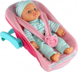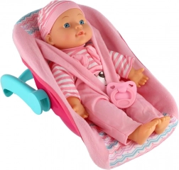 Babypop met zacht lijfje in draagstoeltje met speen 30 cm