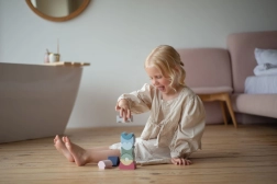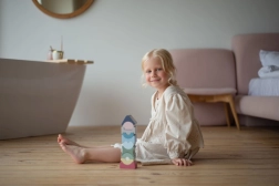Deze pastel balanstoren bevat 11 zorgvuldig bewerkte houten onderdelen die correct in elkaar moeten passen. Dankzij de afgeronde vormen en doordachte constructie kun je de toren niet alleen rechtop stapelen, maar ook veilig naar beide kanten laten overhellen om zo geduld en fijne motoriek te trainen.