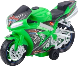 Deze groene racemotor maakt alle kleine fans van snelheid en motorsport blij. Hij is gemaakt van duurzaam kunststof, heeft een stabiele standaard en brede wielen voor stabiel rijden op verschillende ondergronden. Na het indrukken van de knop starten lichteffecten en realistische motorgeluiden die de spelbeleving versterken.