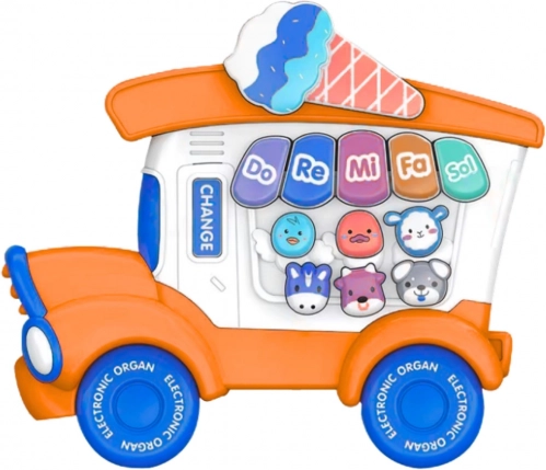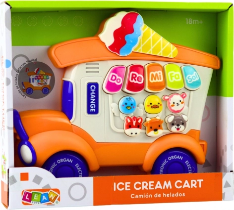 Een vrolijk educatief pianootje in de vorm van een ijswagen trekt meteen de aandacht van kinderen. Het biedt toetsen met de tonen Do–Re–Mi–Fa–Sol, schattige geluidseffecten en melodieën die gehoor, ritme en coördinatie ontwikkelen. De stevige uitvoering met veilige materialen en opvallende kleuren stimuleert vrolijk en leerzaam spel.