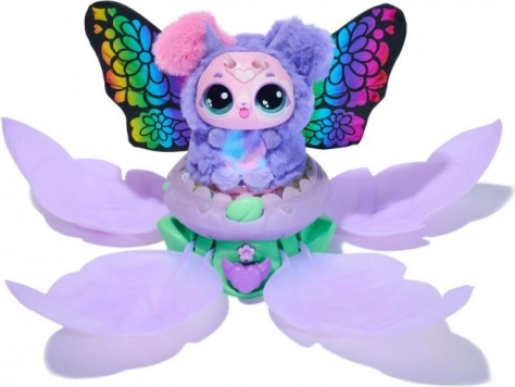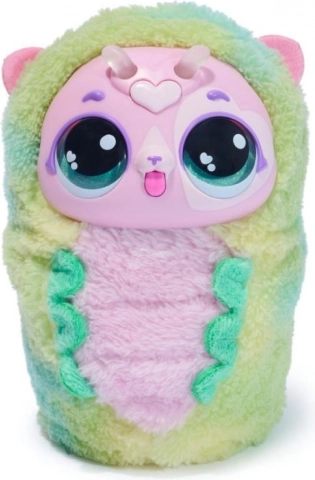 Duik in een wereld van zachte zorg en fantasie. Geef simpelweg water en kijk hoe uit de knop een heerlijk zachte rups tevoorschijn komt. Aaien, verzorgen en genieten van haar licht- en geluidsreacties. Zodra de melodie klinkt en haar snoetje in regenboogkleuren straalt, is het tijd voor de magische transformatie terug in de bloem.