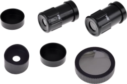 Zenitspiegel, membraanfilter (voor veilig kijken naar de zon), zoeker, telefoonhouder, accessoiresschaal, oculairkap
